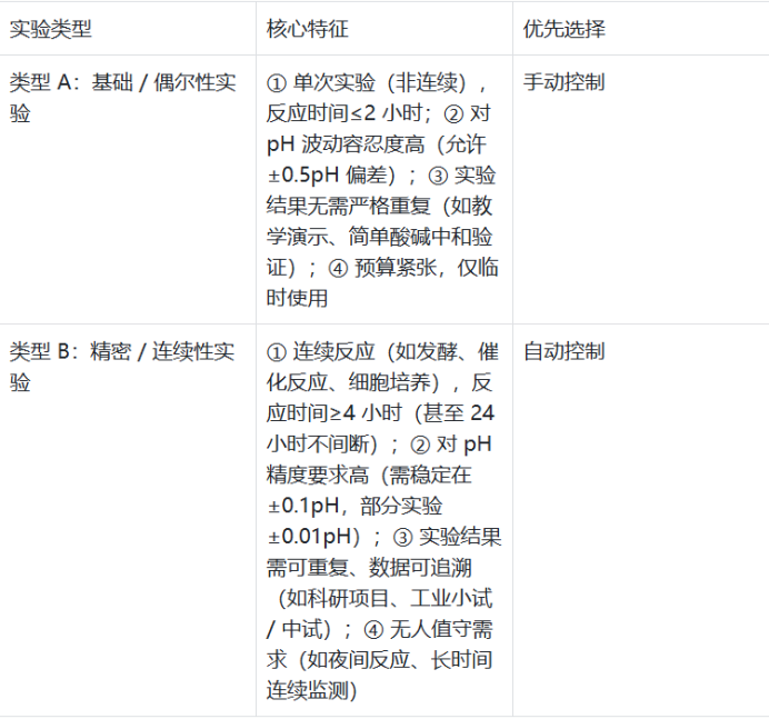 如果你的實驗涉及 “長時間連續(xù)反應(yīng)、高價值樣本、數(shù)據(jù)可追溯”,別糾結(jié) —— 自動控制的初期投入會很快通過 “人力節(jié)省 + 實驗成功率提升” 收回;如果只是偶爾做簡單實驗,手動控制可滿足基本需求,但需嚴格遵守 “分次少量、勤測勤記” 的原則,避免操作失誤。